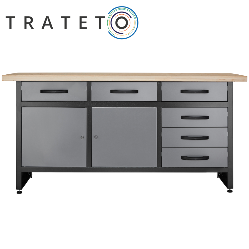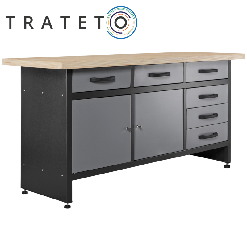 Werkbank 170 cm 2 abschließbaren Tür 6 Schubladen grau